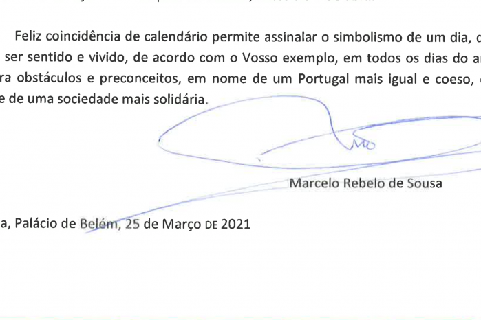 Com todos, partilhamos a mensagem que, a respeito da celebração destas datas, foi proferida por Sua Excelência o Presidente da República, a quem agradecemos o gesto de solidariedade e participação.